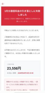 2026年4月、多くのスマホユーザーのもとに、心当たりのない不安を煽る一通の通知が届いています。赤い背景に白抜きで大きく書かれた「3月分通信料金の引き落としに失敗しました」という文言。一見すると公式アプリや公式サイトからの連絡に見えますが、これこそが今、最も警戒すべき巧妙なフィッシング詐欺の典型例です。